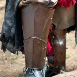 Du fastgør din rustning eller ringbrynje ved at fastgøre læderbånd til din slagkofte og binde disse fast på din rustning/ringbrynje. På den måde sikrer du, at rustningen forbliver på plads under kampen.