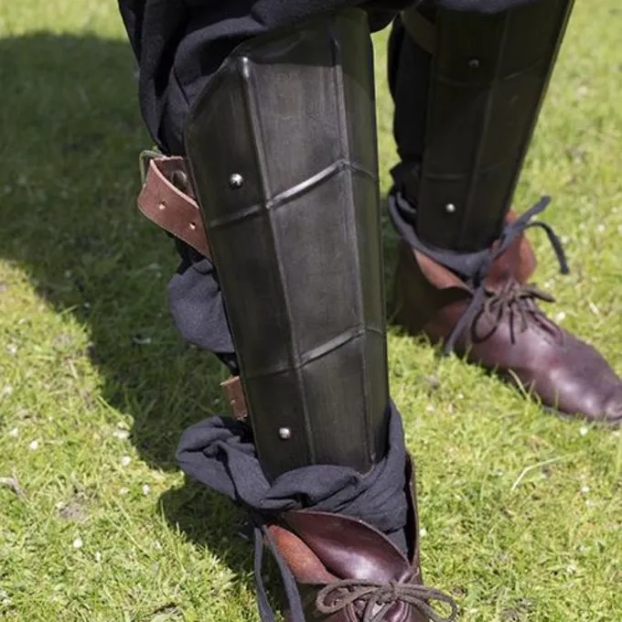 Denne rustning beskytter underbenene og giver plads nok til polyner. Du kan fastgøre dem med robuste læderrem under knæene og ved anklene. Pansringen er smukt designet med en ridset skællende overflade og matcher andre rustninger fra Drake-serien. De kan naturligvis også kombineres med andre rustningstykker. Drake-greaves giver dig friheden til at tilpasse dit kostume.
