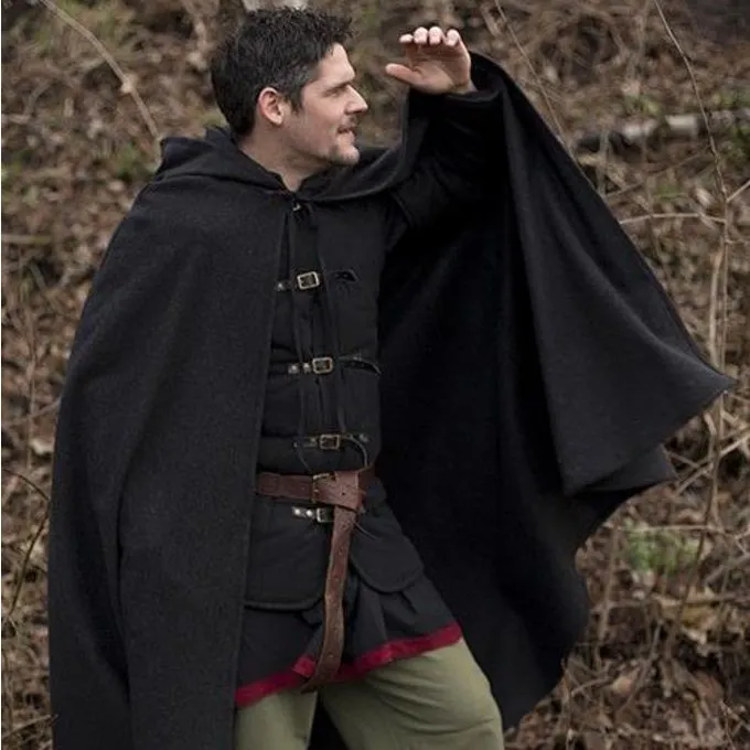 Denne smukke kappe med hætte er fremstillet af 100% uld og egnet til larp men for nyopførelse samt. Komfortabel i flere vejrforhold. Det kan lukkes med snore, men du kan også bruge din egen lægben. Det kan maskinvaskes med uld program. Det kan også hånd-vaskes i lunkent vand. Farven er grå, også i mørkerød. I størrelserne S / M (længde 109 cm) og L / XL (længde 116 cm).