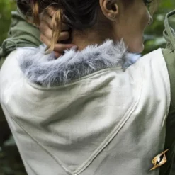 Denne overdress kan let kombineres med et tøj efter eget valg. Det er stort set åbent på siderne og i bunden ender det i en trekantet form, både foran og bagpå. Nederdelen har et interessant og lagdelt design, der får dit tøj til at virke mere omfangsrikt og lagdelt, mens resten af tøjet stadig forbliver synligt. Kraven er beskåret med en kunstig pels polyesterkant. Du kan fremhæve din talje ved at bære et bælte, korset eller reb over overdressen. En god tilføjelse til at fuldføre dit LARP-kostume.