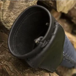 Denne luksuriøse Kogger af holdbart okselæder og ruskind er perfekt til re-enactment, larp og cosplay. Den kan bæres over skulderen eller på bagsiden takket være justerbar rem. Den forreste har en smuk dekoration og Kogger har smukke hånd-bearbejdet detaljer såsom syning på bagsiden, der giver det en historisk håndgjort look.