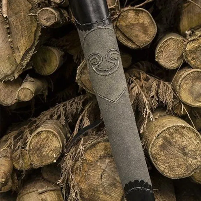 Denne luksuriøse Kogger af holdbart okselæder og ruskind er perfekt til re-enactment, larp og cosplay. Den kan bæres over skulderen eller på bagsiden takket være justerbar rem. Den forreste har en smuk dekoration og Kogger har smukke hånd-bearbejdet detaljer såsom syning på bagsiden, der giver det en historisk håndgjort look.