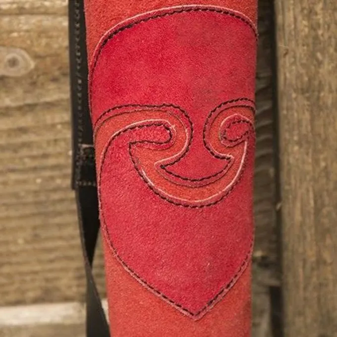 Denne luksuriøse Kogger af holdbart okselæder og ruskind er perfekt til re-enactment, larp og cosplay. Den kan bæres over skulderen eller på bagsiden takket være justerbar rem. Den forreste har en smuk dekoration og Kogger har smukke hånd-bearbejdet detaljer såsom syning på bagsiden, der giver det en historisk håndgjort look.
