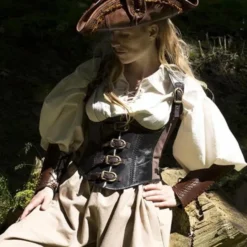 Med denne smukke læder korset kan du oprette den mest omfattende LARP, Cosplay og steampunk outfits. Dette korset er slidt under brysterne og er lavet af robust holdbart okselæder. Med lærred bomuld stropper korsettet kan justeres til din størrelse. Også på bagsiden er snorker at justere størrelsen nemt