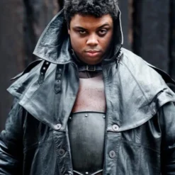 Denne imponerende frakke er specielt designet til LARP og Cosplay af vampyrjægere, heksejægere, varulvejægere og lignende karakterer. Det er lavet af læder af høj kvalitet, der holder meget længe, når læderet er korrekt vedligeholdt. Denne lange frakke når ud til anklene, og læderet beskytter dig mod regn og kulde. Det har en række dekorerede knapper. Toppen, der består af en krave, er aftagelig. Du kan fastgøre den til den tredje række af knapper. Bagsiden af pelsen har en åben split, så den også kan bæres på hesteryg og er behagelig, mens du kæmper og løber. En smuk frakke, der også er velegnet til mange andre figurer, såsom det vilde vest, science fiction-kostumer og andre scenarier.