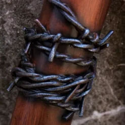 Denne baseball bat er perfekt til post-pocalyptic eller Scifi LARP og Walking Dead eller andre postapocalyptic Cosplays. Flagermusen er malet meget realistisk, så det ligner et baseballbat med pigtråd viklet omkring det at gøre det til en foreløbig våben i slutningen af civilisationen. En stor våben til at tegne zombier, aliens og menneskelige røvere. Denne larp våben er lavet af skum omkring en 10 mm glasfiber kerne med en stærk ydre lag af latex. Grebet er lavet af blødt læder.