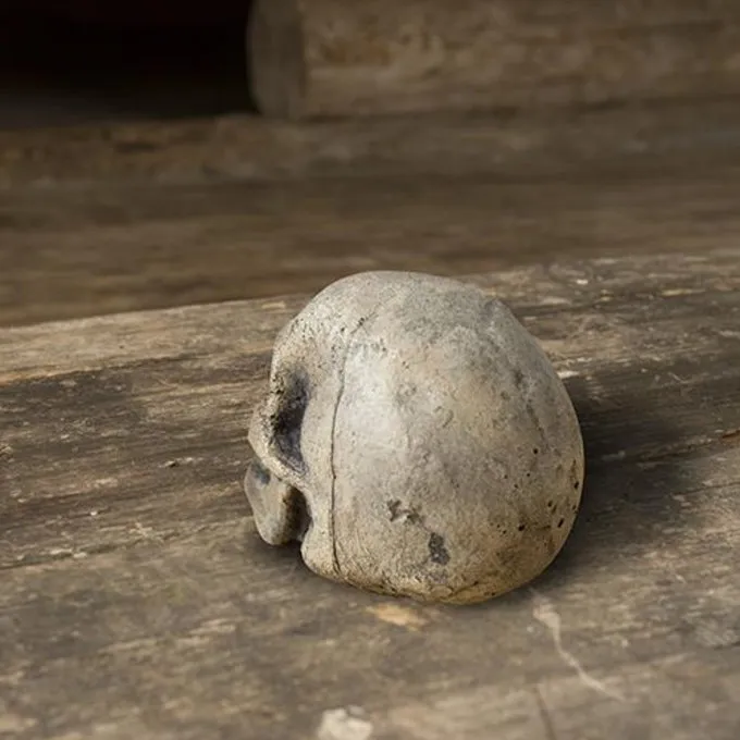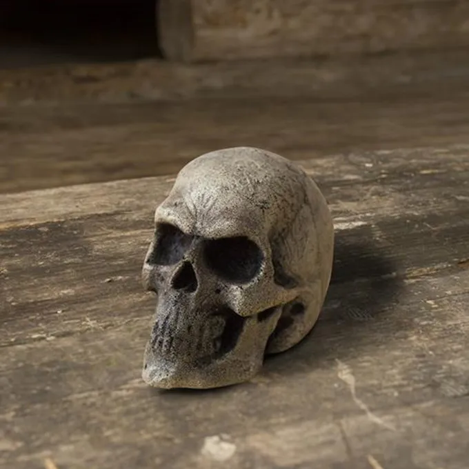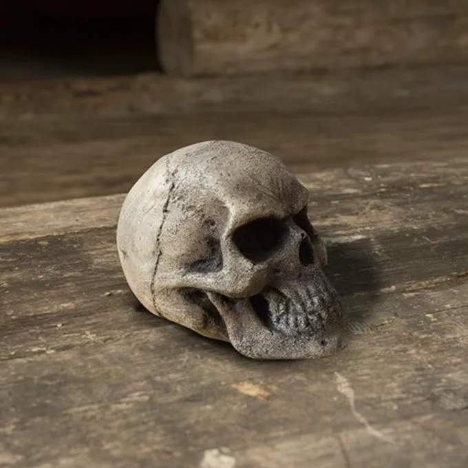 Denne kranium er en prop til teater, Cosplay og LARP. Du kan bruge den som en attribut for en shaman, guiden, nekromancer, troll eller heks. Du kan også bære den rundt som en drikkekop for at skræmme andre. Kraniet er lavet af hårdt EVA skum og er malet meget livagtigt, hvilket gør det til en smuk egenskab for din karakter.