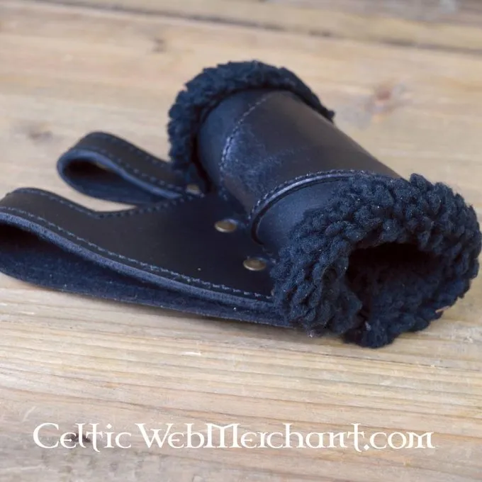 Dette sværd holder til larp sværd er lavet af robust læder og er foret med pels. Egnet til venstrehåndet LARPers. Pelsen foring forhindrer våben falder ud af holderen. Den er egnet til næsten alle larp våben med en bredde på op til 6 cm. Den fås i sort og sort / brun. Det er 12 mm lang og vejer 150 g.