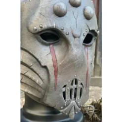 Denne maske er perfekt til larp, cosplay og andre kostumer. Lavet af 100% latex, er det stærkt, holdbart og realistisk ligner en metalmaske. Du kan fastgøre det med et tykt elastikbånd.
