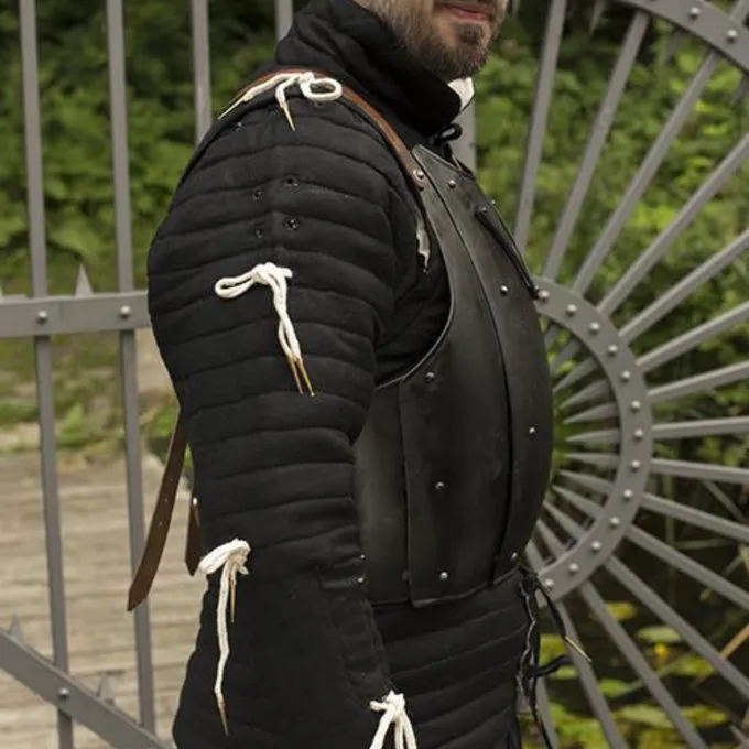 For at fastgøre din rustning eller chainmail sikkert, kan du vedhæfte læder snørebånd til din gambeson og fastgøre disse til din rustning / chainmail. Rustningen forbliver således i stand under en kamp.