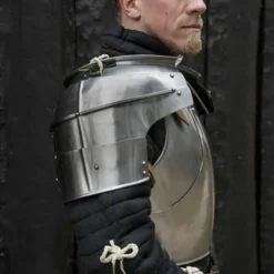 Den Milanese serien er en samling af separate armor mv, Epic Armoury. Du kan købe alle separate rustning dele for at gøre en fuld rustning. Du kan også kombinere de rustning dele med alle andre rustning dele fra Epic Armory, eller blot bære dem separat over dit kostume. Disse pauldrons yde beskyttelse til skuldre og overarme. De kan kombineres med bryst og ryg rustning. De pauldrons er designet til at overlappe kyrads og derved give ekstra beskyttelse til armhulerne. Du kan fastgøre pauldrons med læderremme på overarmen og skulderen. Med snørebånd kan du vedhæfte dem til en kyrads. Denne rustning er perfekt til sene middelalder kostumer og larp kampe.