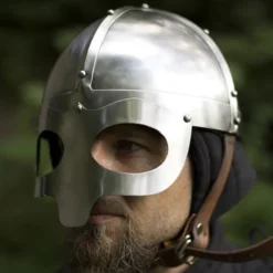 Denne hjelm er baseret på vikinghjelme fra det 10. århundrede af typen spektakulær hjelm. Disse hjelme forlod to huller fri omkring øjnene, mens resten af øjenområdet var godt beskyttet af hjelmens stål. Hjelmen er forstærket med stålnitter, ekstra stålplader over midten og øjenbrynene ligesom de originale hjelme. Du kan vedhæfte hjelmen med en robust læderbeslag. Denne hjelm er velegnet til LARP-kampe, teater og cosplay.