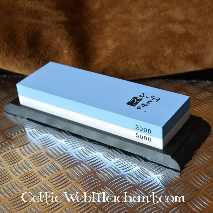 En japansk kunstig hvæssesten til finslibning. Denne hvæssesten har en åben struktur og to sider: en grove korn (korn 3000) og en finkornet (korn 1000) side. Denne hvæssesten er lavet til slibning madlavning knive.
