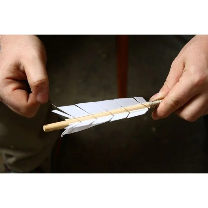 Den germanske pil er lavet efter historiske indikationer. Fjerene er smallere for ekstra sikkerhed. Denne pil har en længde på 30″ (76,2 cm), er historisk fremstillet og forsynet med naturlige fjer.