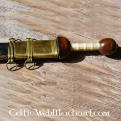 Dette sværd er 84 cm lang. Det har en fæstet lavet af træ og leveres med et træ skede, dækket med sort læder og messing ornamenter
