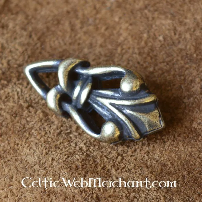 Denne messing bæltedekoration måler 3,8 x 2,0 cm. Det er egnet til remme med en bredde på op til 2 cm