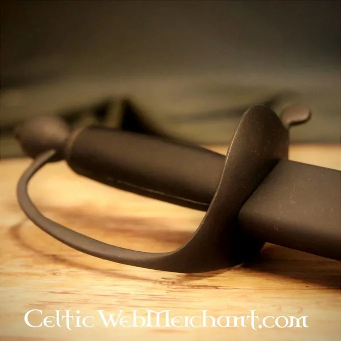 Denne fine og praktiske sabel har to blodrilles i sit blad, der sikrer en ekstra reduktion af vægten. Grebet er fremstillet af massivt jern og forsynet med en side ring. Klingen er lavet af kulstofstål GJ en hårdhed på 50 til 52 HRC.
