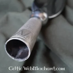 Denne korte spydhoved er en kopi af en original udgravet i Frankrig. Oprindeligt denne type spydhoved blev anvendt fra det 8. til 11. århundrede. De blev lejlighedsvis dekoreret (indgraveret eller malet). Spydhoveder som dette blev brugt af vikingerne, Franks, karolingerne, Merovingerne og angelsaksere.