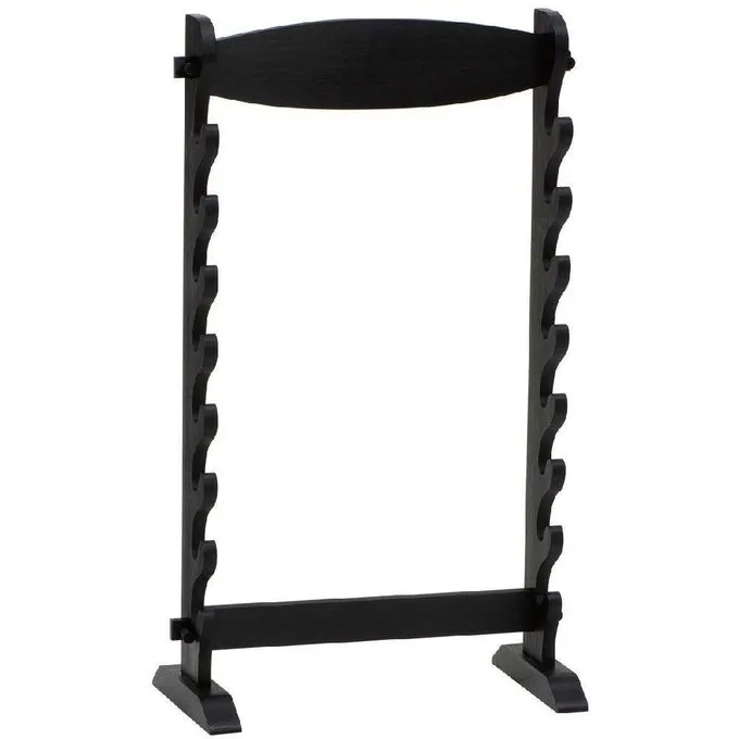 Otte samurai sværd passer i denne stor stand. Den er velegnet til katanas, iaito, bokkens og wakizashis. Denne store stativ er lavet af sort syltede træ og er 81 cm lang og 47 cm bred.