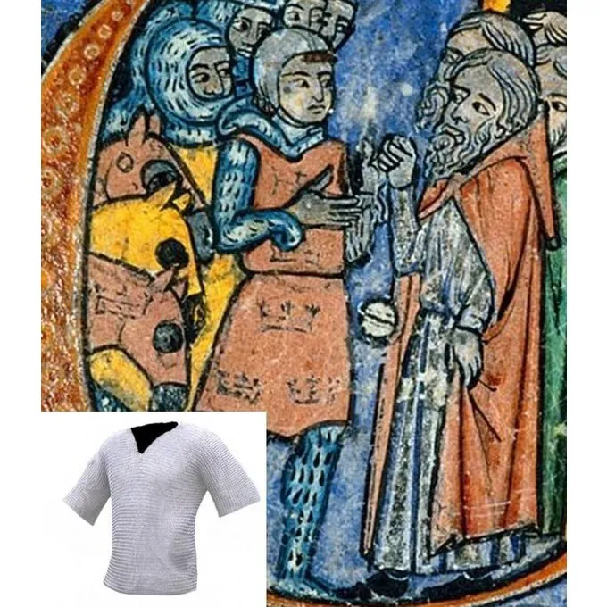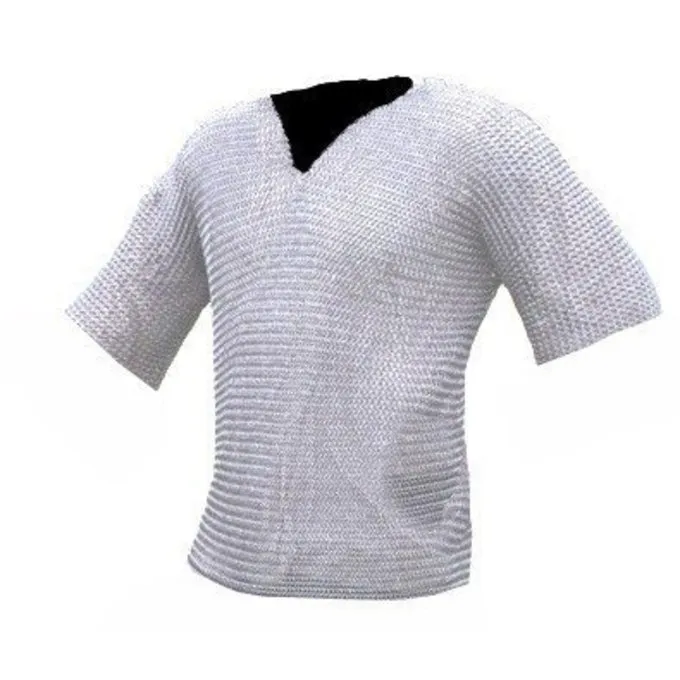 Denne brynjefrakke er fremstillet af 1,6 mm tyk galvaniseret gathered Runde ringe med en indre diameter på 9 mm. Ringene er håndvævede fire i én. Den brynjefrakke har korte ærmer og når til hoften.