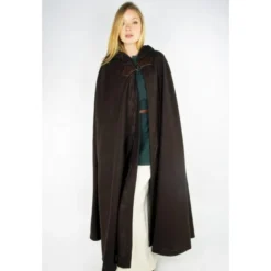 Denne Uldmix kappe har smukke broderede dekorative Kanter og er velegnet til re-enactment og LARP. Den tunge stof er let vandafvisende og varmt i vintermånederne. Den kappe kan fastgøres med en smuk spiral formet fibula med dragen hoved.
