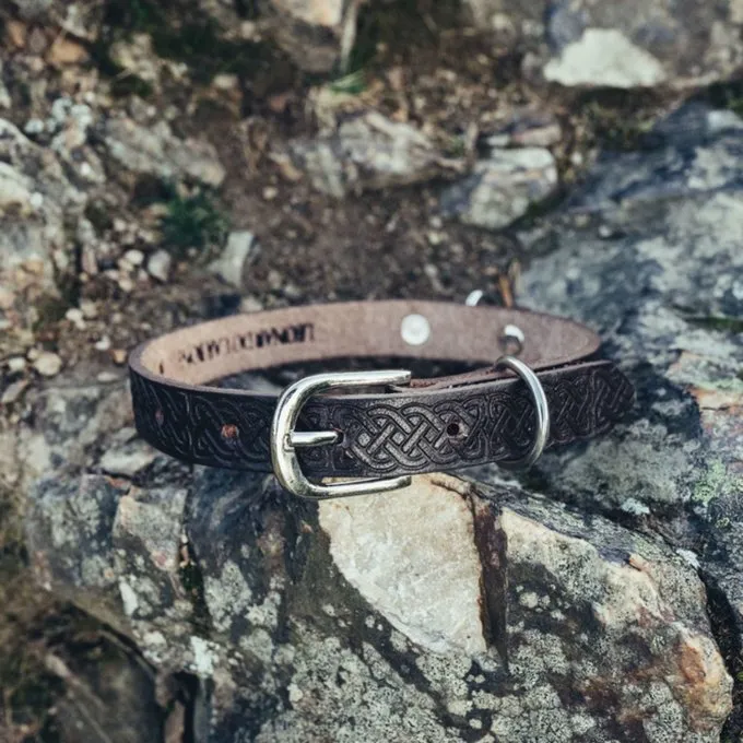 Denne krave er en god gave til din hund eller til hundelskere. Med denne krave er din hund helt i keltisk stil, fordi den er dekoreret med et smukt knude mønster. Den matchende hundbånd er tilgængelig separat.
