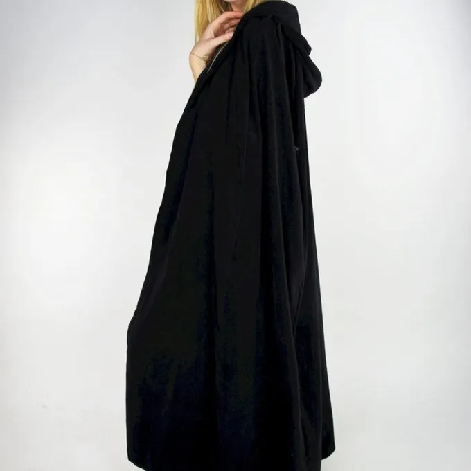Denne kappe er lavet af fløjl og har sort foring. Den fås i én størrelse i farverne sort, brun, blå, grøn og rød.