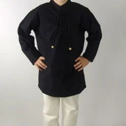 Denne trøje er håndvævet af blød bomuld. Halsen kan lukkes med en snor. Den fås i farverne sort og fløde i størrelse XXXS til XS.