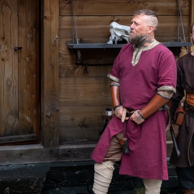 Denne tunika er lavet af bomuld. Den fås i størrelserne S op til XXXL. Se billedet for størrelsestabellen.