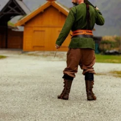Traditionelle Rusvik -bukser baseret på originaler båret af vikinger fra Birka og forskellige billeder. Disse vikingebukser er lavet af linned.