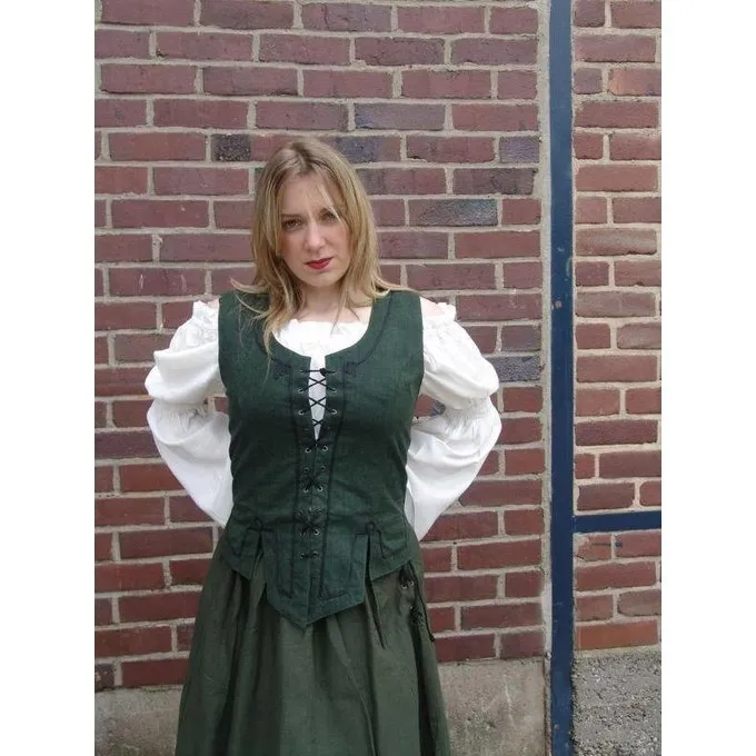 Denne ærmeløs jakke er lavet af bomuld. På forsiden kan man snøret op med en snor og på bagsiden det kan justeres til den rigtige størrelse med en blonde. Jakken fås i farverne sort, grøn, blå, rød, mørkebrun og tobak i størrelserne S til XXXL.