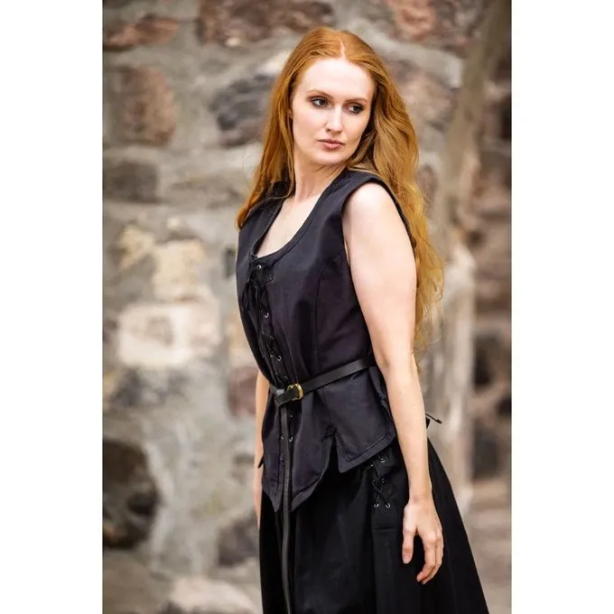 Denne ærmeløs jakke er lavet af bomuld. På forsiden kan man snøret op med en snor og på bagsiden det kan justeres til den rigtige størrelse med en blonde. Jakken fås i farverne sort, grøn, blå, rød, mørkebrun og tobak i størrelserne S til XXXL.