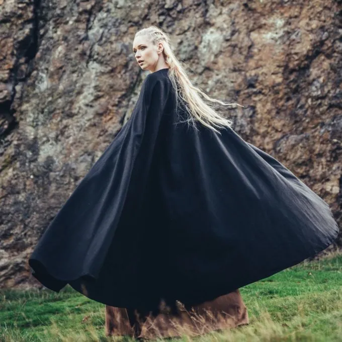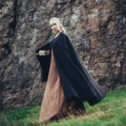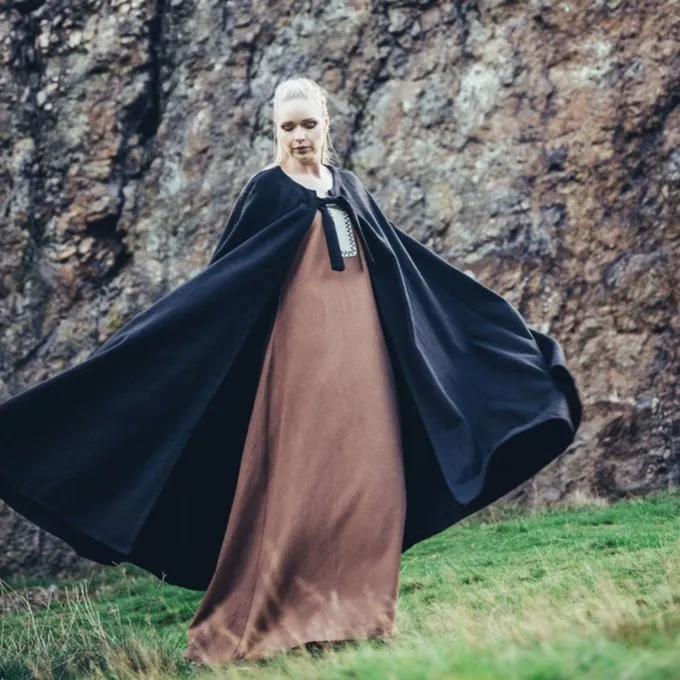 En funktionel middelalder kappe egnede til genbrug vedtage flere perioder. Denne kappe beskytter mod regn, vind og sol. Perfekt til sommer og vinter lejre. Den kappe er lavet af uld mix og fås i farverne: Sort, rød, grøn, brun, grå, mørkeblå