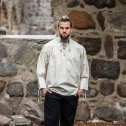Universal middelalderlig skjorte egnet til utallige tøj. Dette store stykke kan let bæres med periodebukser. Det kan bæres for både middelalderlige og tidlige moderne kostumer. Denne skjorte er også meget velegnet til at bruge som en undertrøje til for eksempel LandsKnecht eller Tudor Outfits.