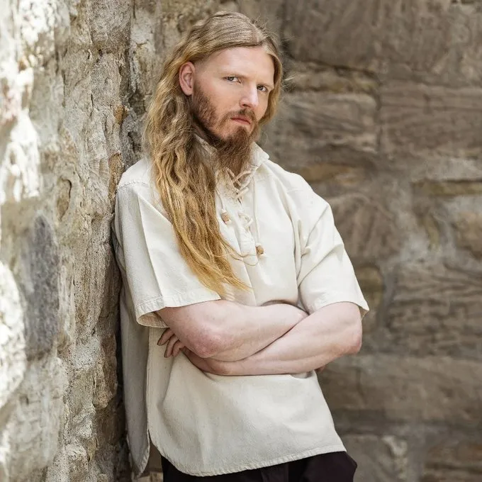 Universal middelalderlig skjorte egnet til utallige tøj. Det har korte ærmer så perfekte til varme sommerfestivaldage! Dette store stykke kan let bæres med periodebukser. Det kan bæres for både middelalderlig, pirat og tidlige moderne kostumer. Denne skjorte er også meget velegnet til at bruge som en undertrøje til for eksempel LandsKnecht eller Tudor Outfits.