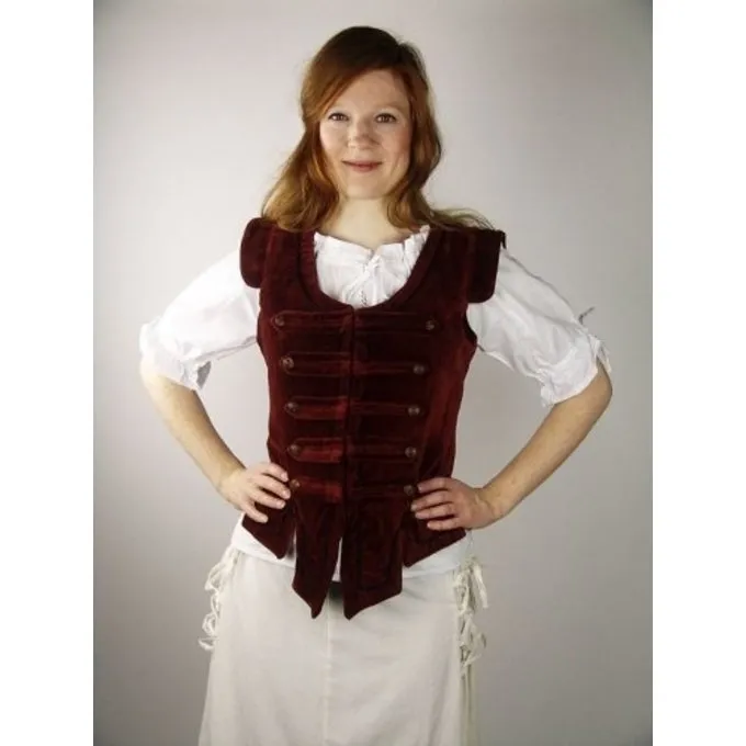 Denne jakke er lavet af duvetyn. Den er lukket med kroge. Det har dekorative Knapper. Jakken fås i størrelse S til XXXL i sort og rød.