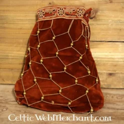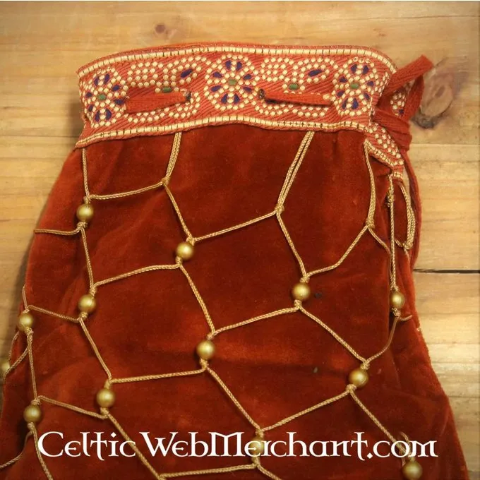 Dette luksuriøse pose kan bruges til Middelalder- og Renæssancearkæologi re-enactment. Det fuldender en adelsdame, en aristokratisk eller kongelig outfit. Den fløjlsagtig struktur i posen er dekoreret med et mønster af imiteret guld tråd og imitationer af naturperler. Det er fuldbragt af den smukt dekorerede øverste kant, der ligner en luksuriøs gobelin