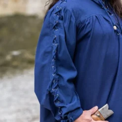 Denne smarte skjorte er egnet til at bære separat eller under en dublet eller vest. Det har snorer for en autentisk udseende. Skjorten fås i farverne sort, rød, brun og grøn.
