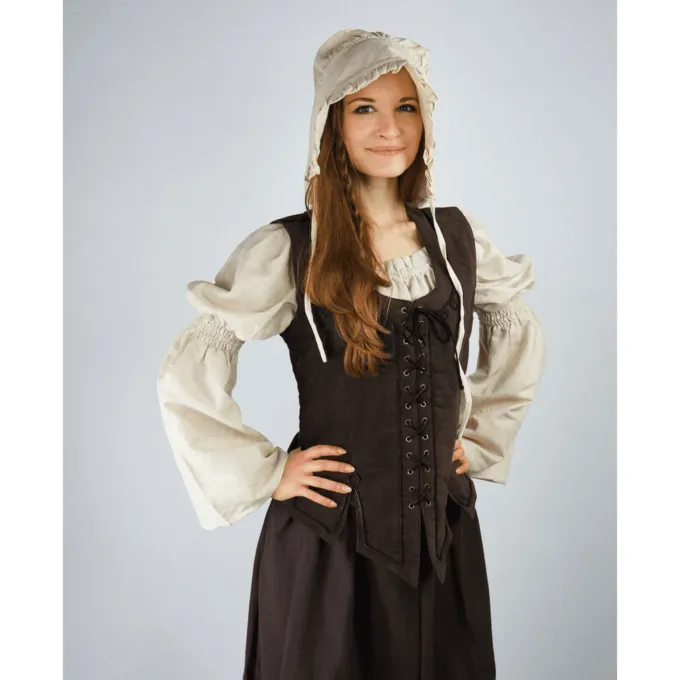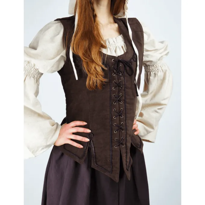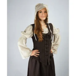 Dette korset er lavet efter flere originaler afbildet i renæssancemalerier. Dette korset er meget velegnet til at bære over en bluse og nederdel på en middelalderlig festival. Dette korset har snørebånd foran, som det kan justeres til din pasform.