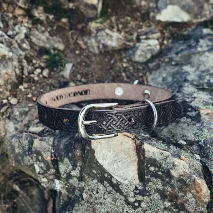 Denne krave og hund snor er en god gave til din hund eller til hundelskere. Med dette sæt er din hund helt i keltisk stil, fordi den er dekoreret med et smukt knude mønster.