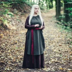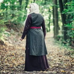 Denne surcoat er lavet af bomuld. Det kan lukkes med et bånd i siderne. Den surcoat fås i størrelse S / M, L / XL og XXL i grøn, creme og mørkebrun.