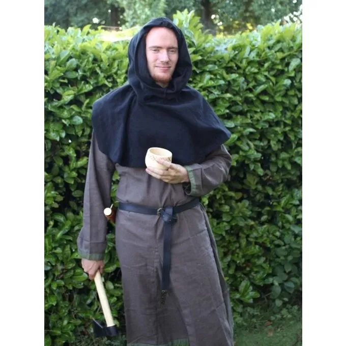 Denne chaperon er lavet efter en original udgravet i Hedeby. Modeller som denne blev båret i Nordeuropa mellem 4. og 14. århundrede og findes bl.a. på Orkneyøerne, i det nordlige England og i Herjolvsnes.