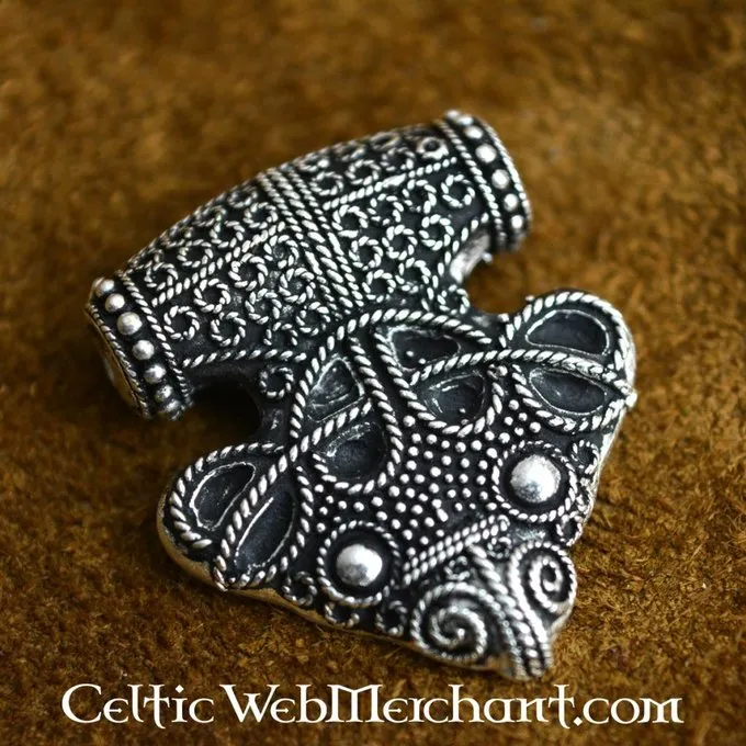 Denne smukke Viking juvel er en kopi af en 9. århundrede original udgravet i Sigtuna, Sverige. Dette Tho hammer ender i en ravn motiv og er semi-granuleret. Sigtuna blev grundlagt omkring 980 af kongen Viking Erik Segersäll. Denne by erstattet Birka som mest betydningsfulde handelsstation.