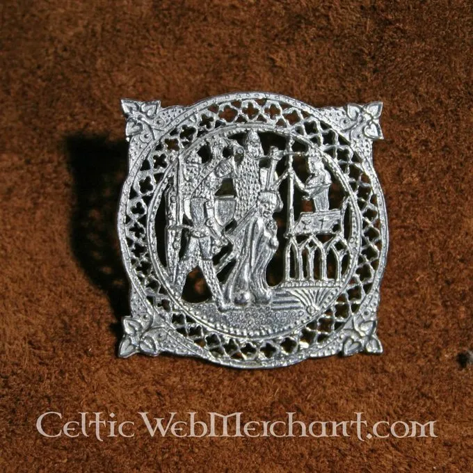 Denne tin mærke er en kopi af flere originaler fra midten af det 14. århundrede. Det mærke viser fire riddere i fuld rustning, en decapitates Thomas Becket med sit sværd.