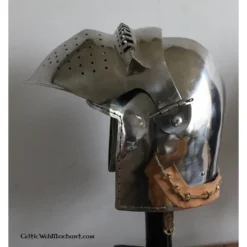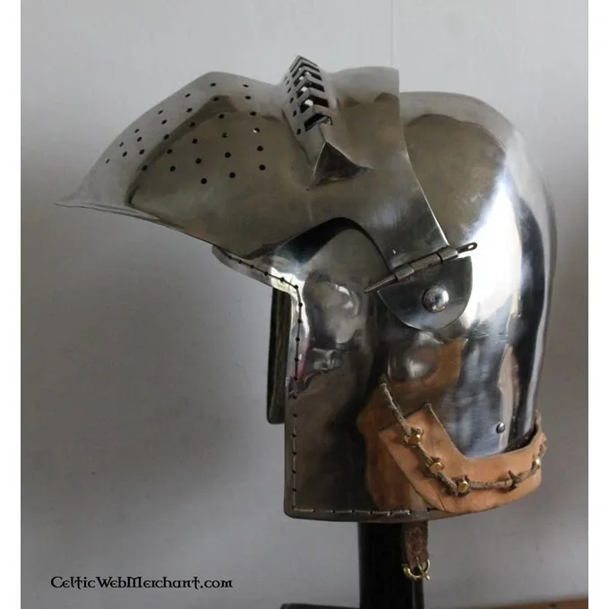 Denne bascinet er lavet af 2 mm tykt stål for at give ekstra beskyttelse. Det har en tekstil articles og en rem til at fastgøre det under hagen.