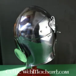 Denne lukkede hjelm er fremstillet efter originalen, som er en del af Avant-rustningen. Hjelme som dette blev båret over hele Europa fra 2. halvdel af det 15. århundrede og fremefter. Den originale model er en del af blandt andet det 15. århundrede rustning af hertugen af Milano.