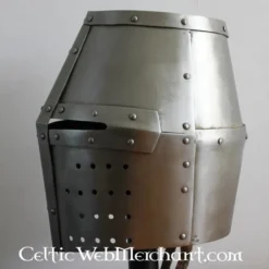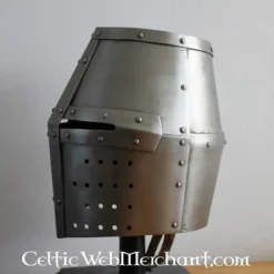 Denne tøndehjelm er lavet efter en original fra Manesse Codex. I dag er det er udstillet på slottet af den hellige Engel i Rom. Den tøndehjelm var normalt bæres over en mindre hjelm som en hemmelighed. Hjelme som denne blev båret hele feudale Europa, og blev fundet et stort antal originaler i Tyskland, Flandern, England, Italien, Schweiz og Østrig.