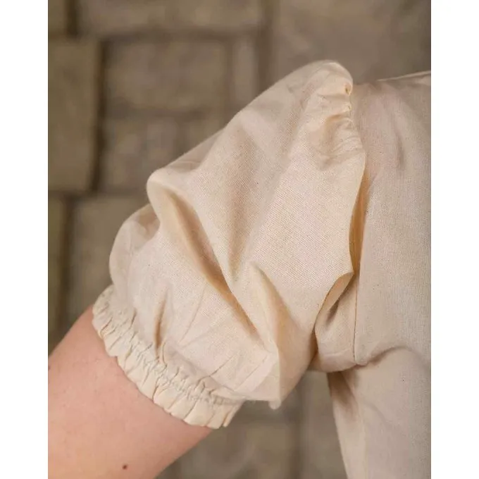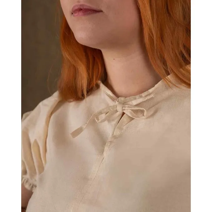 Denne sommer bluse til kvinder har en dejlig pasform og er lavet til de varme sommerdage. Det er kort, let i stof og kan kombineres med både nederdele og kjoler. Blusen ser også meget flot ud med et korset eller bælte. Perfekt til en LARP -samling eller middelalderlig festival.