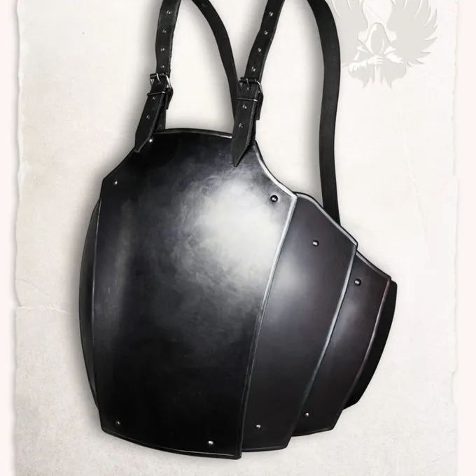 Materiale: kulstofstål / Finish: bronzed / Tykkelse: 1,2 mm / Længde: 39 cm / Maks. bryst omkreds ca.. 118 cm / Baseret på en historisk original