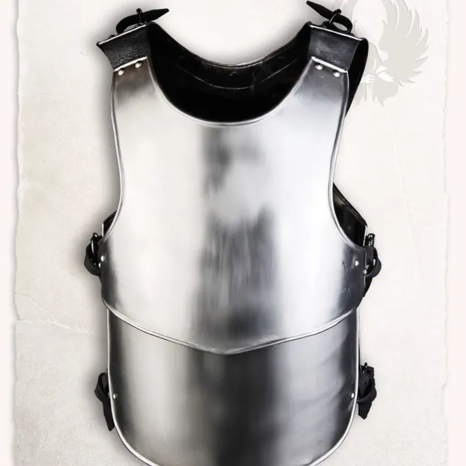 Denne kyrads består af et bryst og en bagplade. Den er designet i samme stil som andre Våbendele Elias. Elias rustning dele er lavet til LARP og Reenactment. De er lavet mere økonomisk og derfor billigere end andre harness dele. Alle dele er fremstillet af 1,2 mm tyk kulstofstål. Denne rustning kan nemt bæres over din ringbrynje brynje eller Gambeson findes. Det har læderremme til justering det til størrelse. Denne brystplade og bagplade er den lange version af de regelmæssige indkapslede Elias.